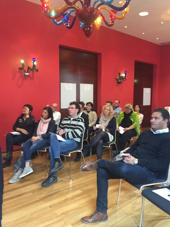 Trotz einer Begrenzung auf 20 TeilnehmerInnen wurde bei einem gemeinsamen Frühstück mit "wirrem Geplaudere" noch einiges an Informationen ausgetauscht.